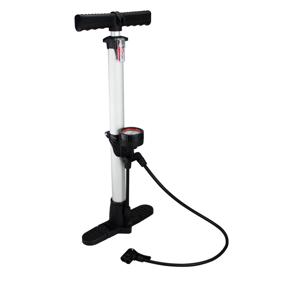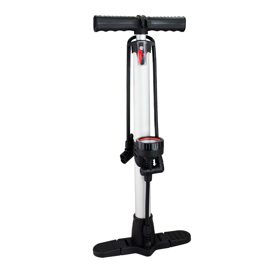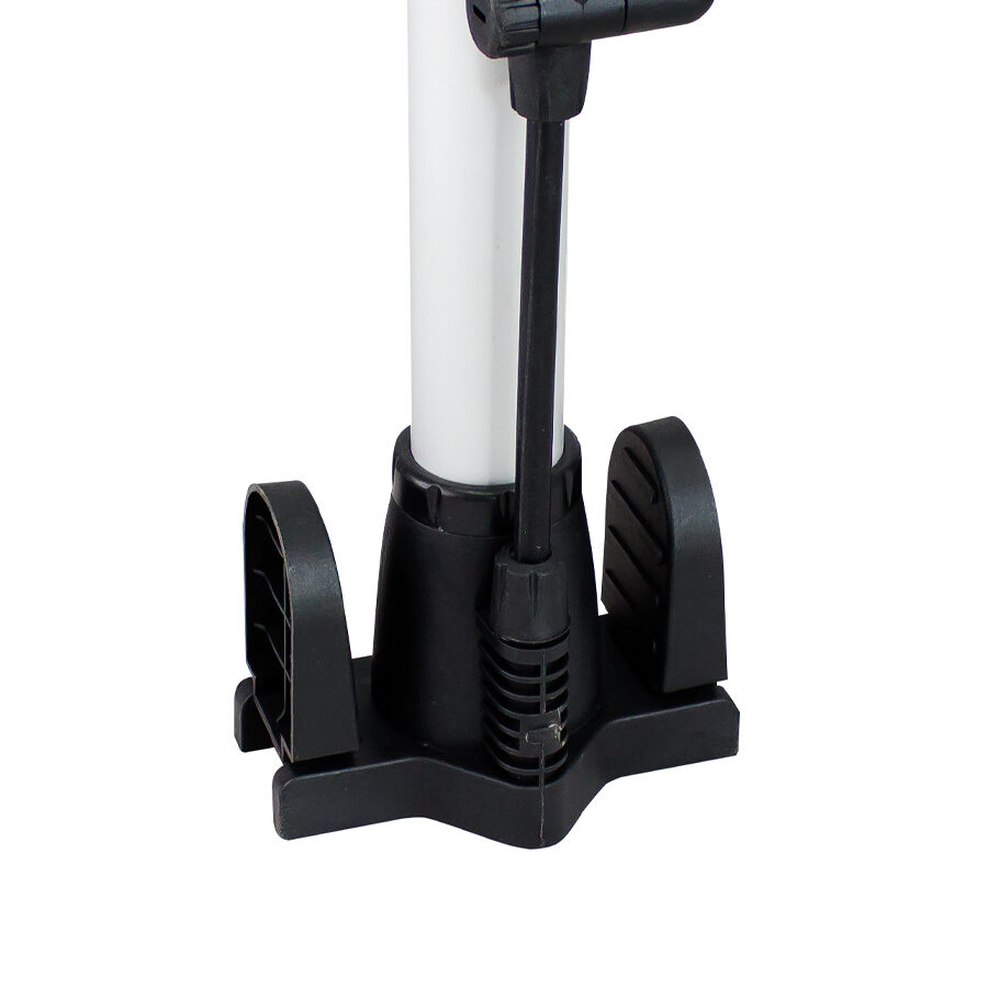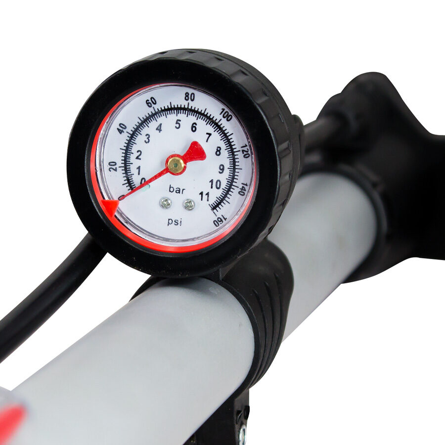 Bombín de pedestal con válvulas de inflado, manómetro bar11/psi160 y soportes pedestales abatibles.