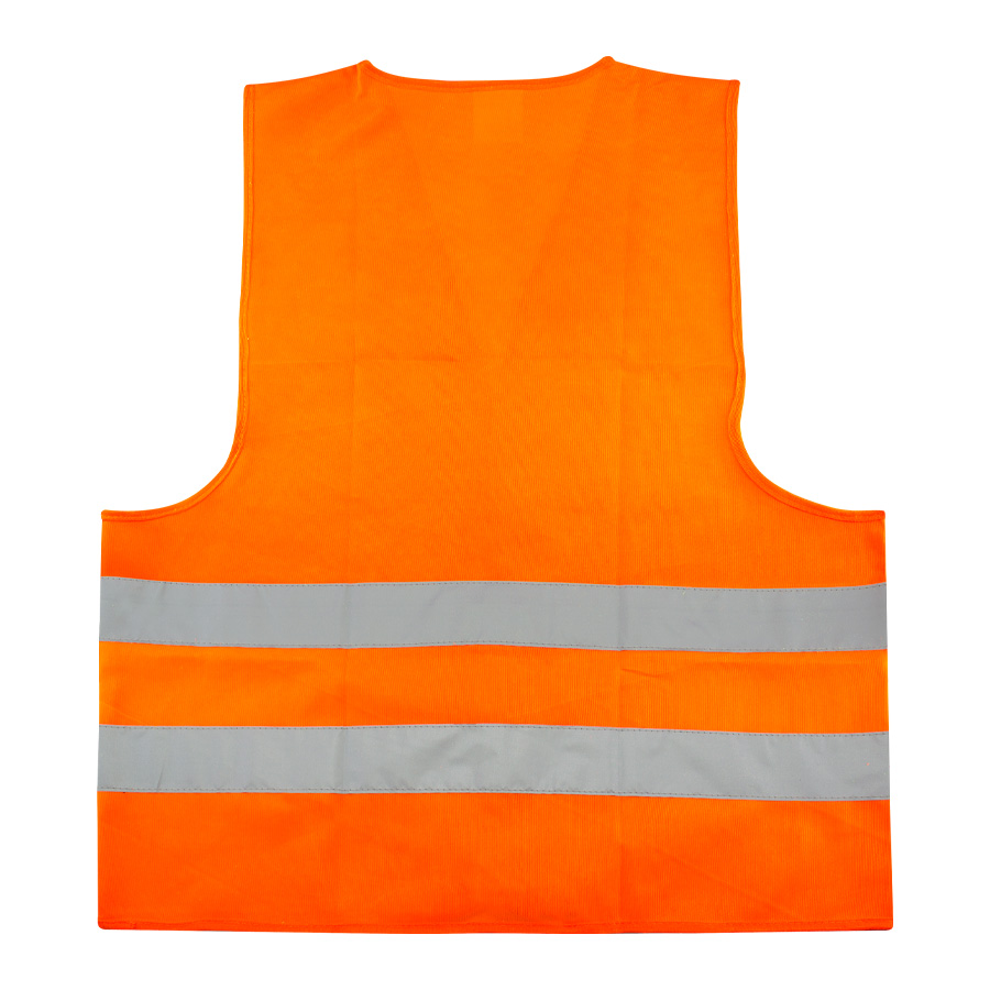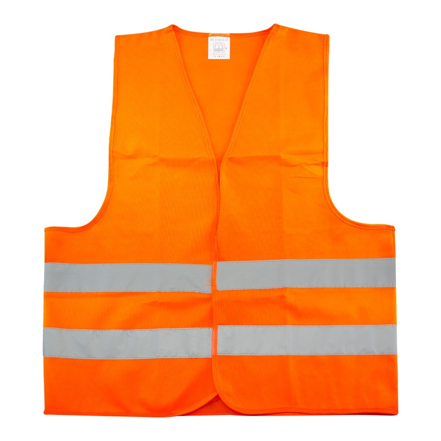 Chaleco Reflectante de Seguridad modelo «Basic», 100% tela poliéster 100 g/m2 fluorescente con bandas reflectantes color plateado de 5 cm. de ancho. Incluye cierre velcro. Cumple con norma vigente de Ley del Tránsito y norma legal EN 471.