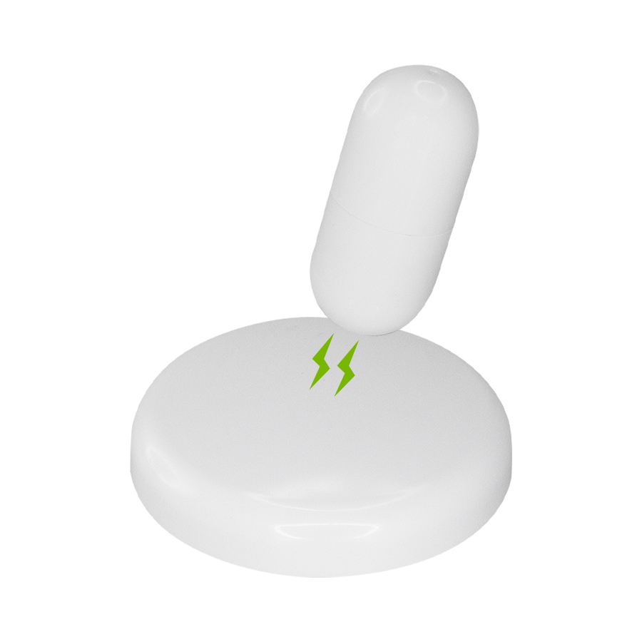 Destacador amarillo «Cápsula» blanca, sobre base plástica blanca. Cuenta con sistema imantado que sostiene la cápsula de pie sobre la base, estabilizándola como «mono porfiado». Amplia área de impresión tanto en la cápsula como en la base. Presentación en caja de regalo blanca. Importante: presionar la punta sobre papel por 3 segundos para que la tinta amarilla baje.