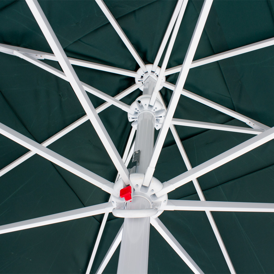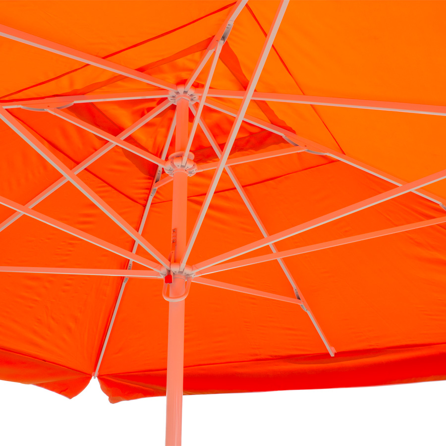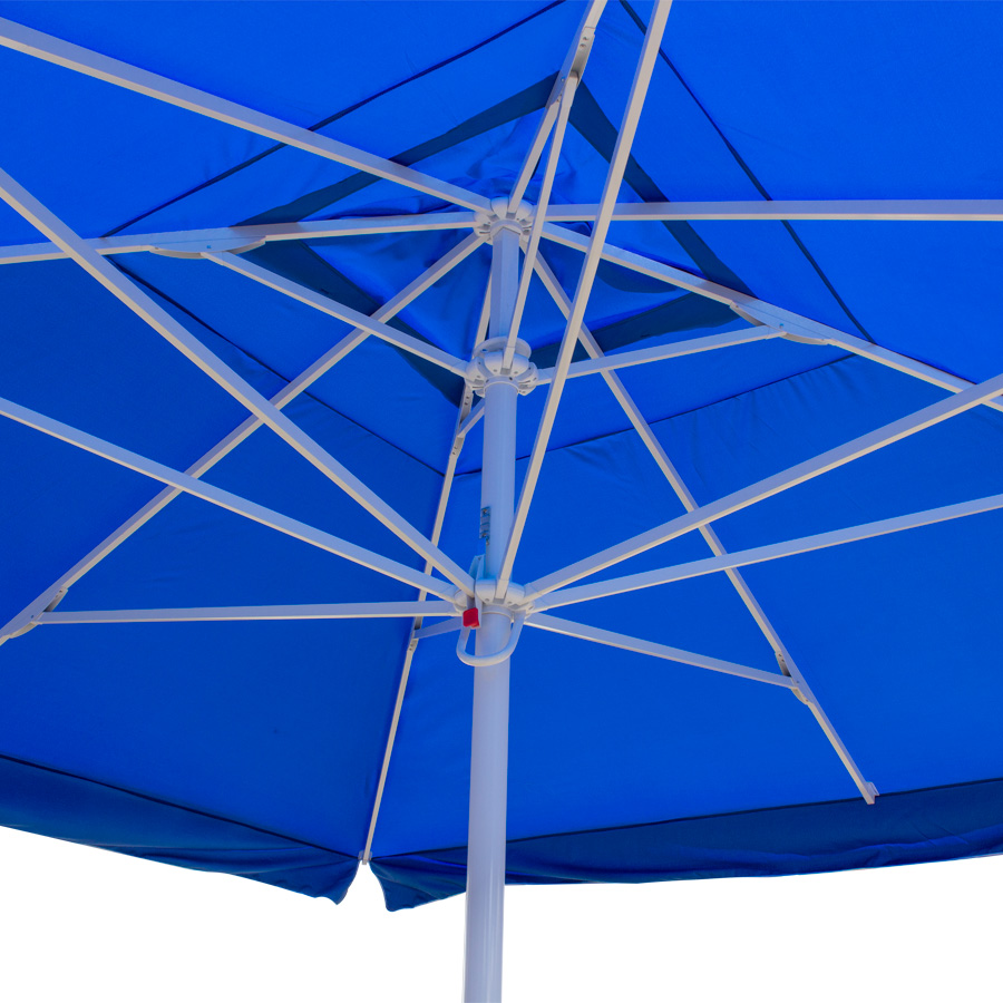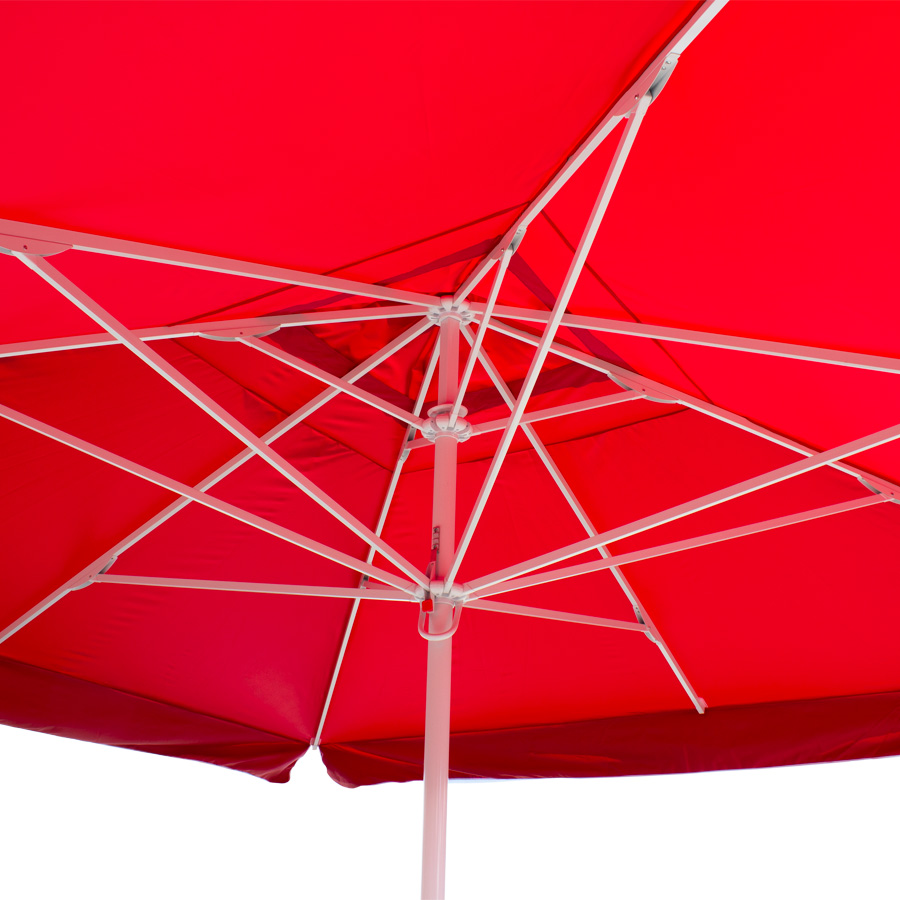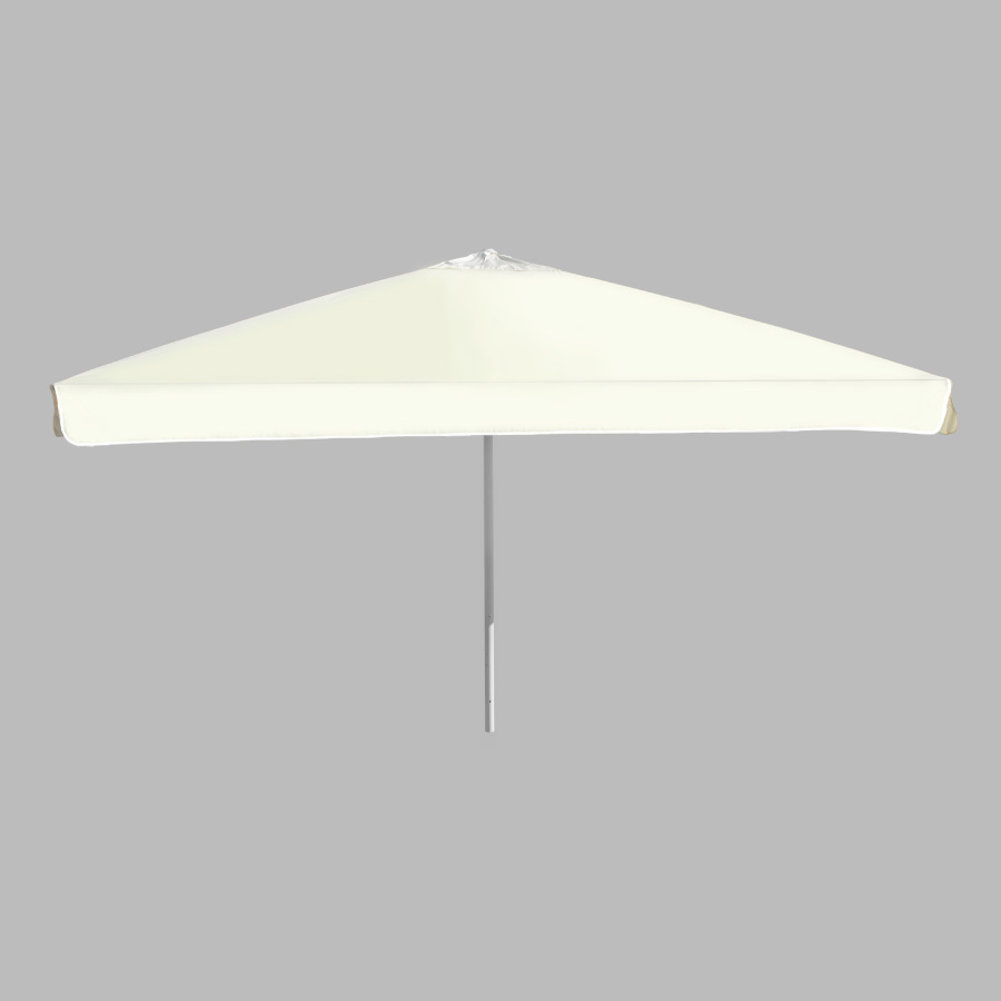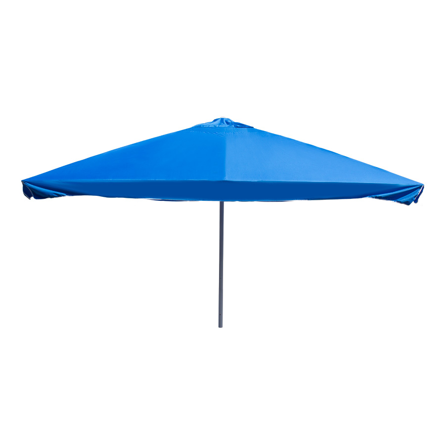 Quitasol gigante cuadrado de 4x4m, con 4 cascos de lona Poliéster UV impermeable de 180g. Contiene asta de Acero recubierto de 60mm de diámetro x 3.4m de altura, sistema de apertura manual. Para su instalación, se recomienda anclar el quitasol directamente a un hoyo en el concreto o pavimento, o bien utilizar la base P24, la que también se debe anclar con 4 pernos (incluídos en la base) al concreto o pavimento. Si el largo de estos 4 pernos no es suficiente, se recomienda comprar pernos adicionales más largos.