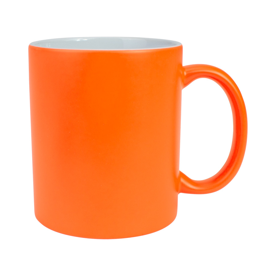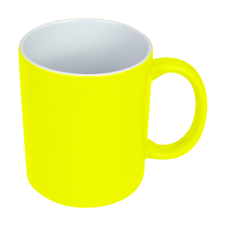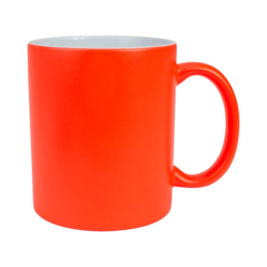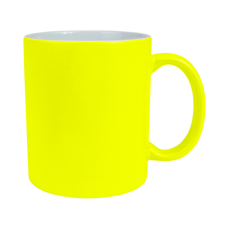 Tazón cerámico de 11oz (330 cc) con superficie exterior de color fluorescente, interior blanco, para Sublimación. Producto de calidad superior ORCA. Presentación en bolsa plástica translúcida + caja de cartón blanco.