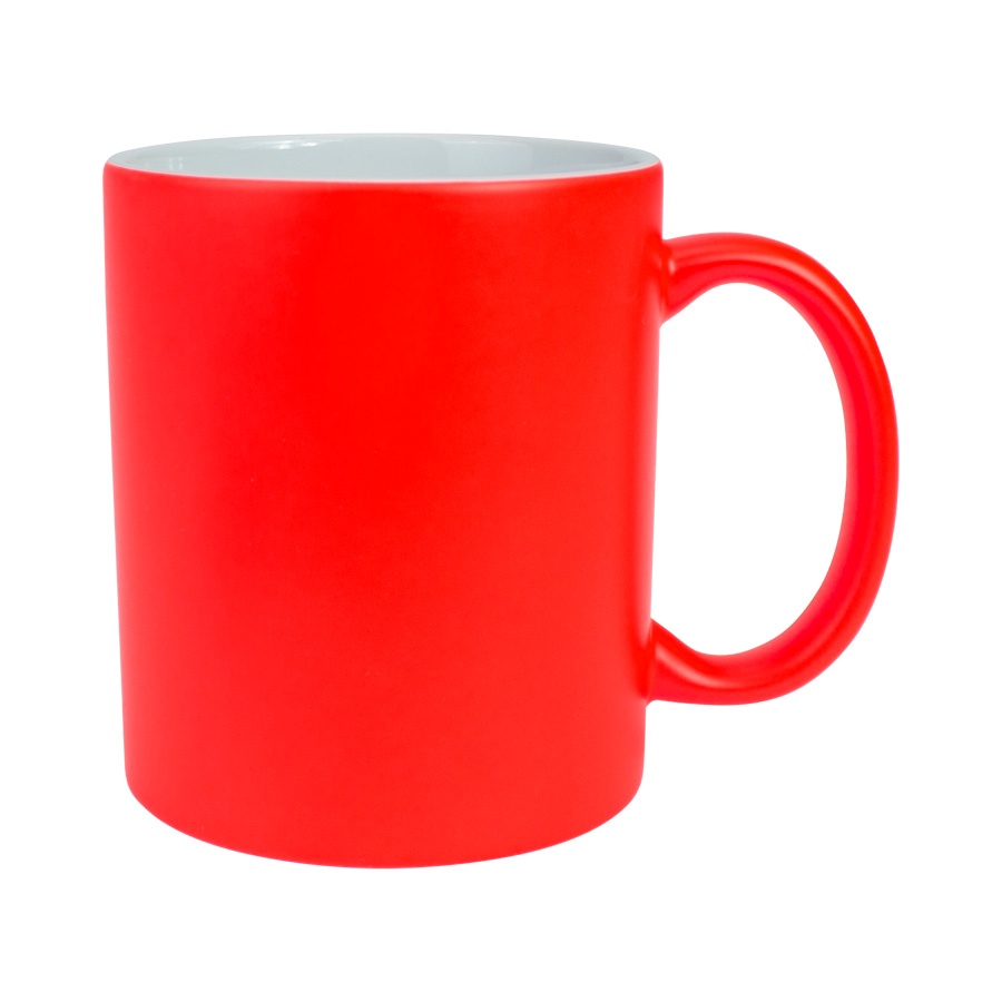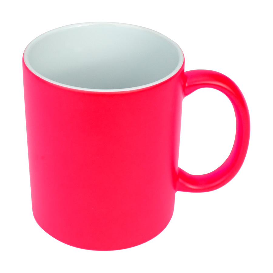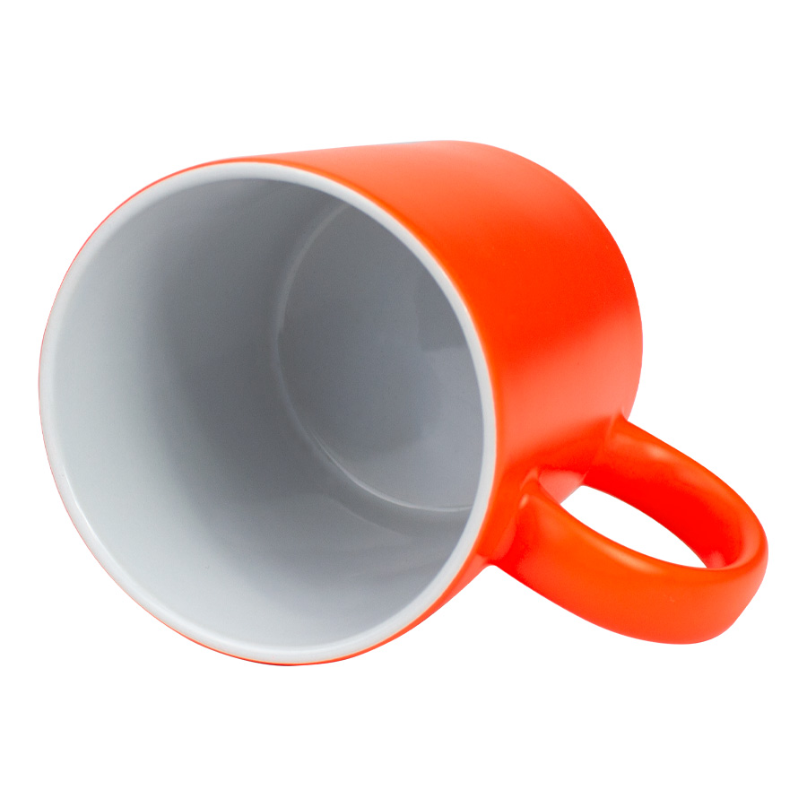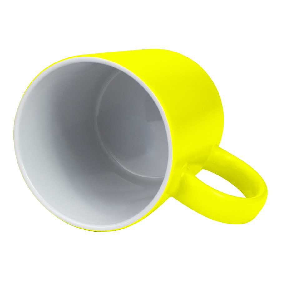 Tazón cerámico de 11oz (330 cc) con superficie exterior de color fluorescente, interior blanco, para Sublimación. Producto de calidad superior ORCA. Presentación en bolsa plástica translúcida + caja de cartón blanco.